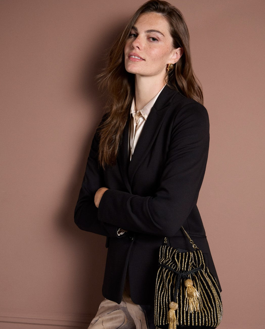 Bombonera de terciopelo bordada con beads Negro Surkana
