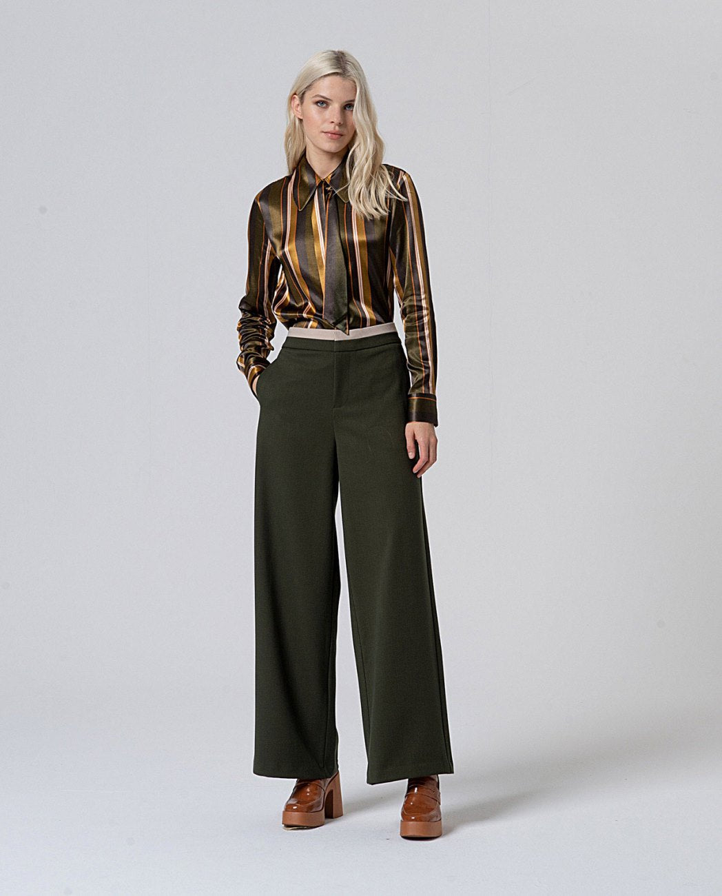Pantalón amplio contraste kaki Surkana